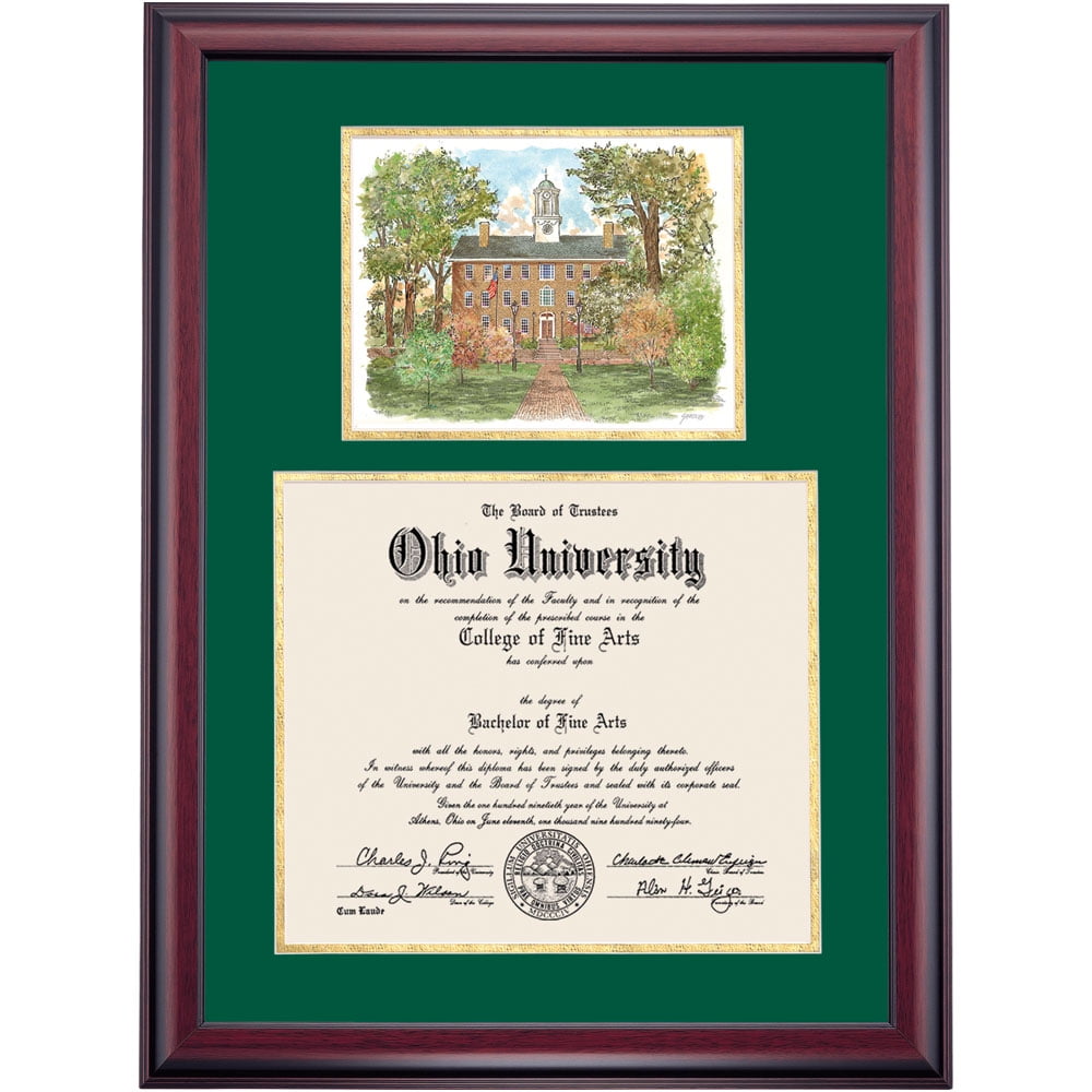 Ocm Diploma Frame For Ohio University Ou Hunter Green Gold Mat With Cutler Hall Watercolor 27 X 20 Walmart Com